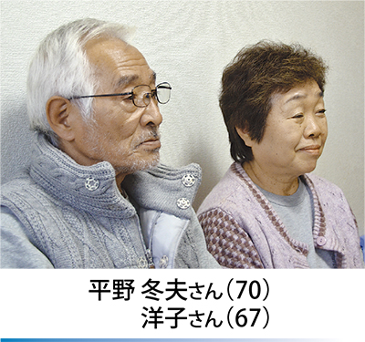 「若い人たちは、避難先で仕事も、新しい生活も得られ、根付くことができる」と話すのは、福島県双葉郡富岡町で暮らしていた平野夫妻。現在は市内平沢で生活を送っている。