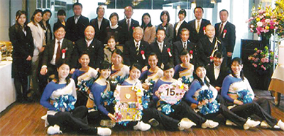 東海大学体育会ソングリーダー部(森久保俊満総監督)が15周年を迎え3月5日、同大校友会館で式典が行われた=写真(同部提供)。
