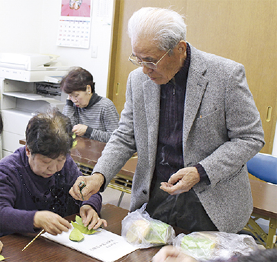 3月25日には、清水町の65歳以上の住民で構成する団体の集まりで、「葉書」の作り方を教えた。参加者は「いつまでも元気に長生きしますように」「いつもありがとう。これからもよろしく」など願い事や家族への思いをしたためた。