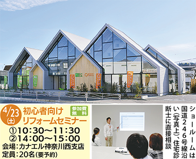 住まいも「築20年」となると、いたるところに不具合が生じてくる。建物の老朽化などから、築20年のタイミングでリフォームを検討する人も多い。平沢のカナエルiリフォームでは4月23日(土)、築20年以上の住まいを対象とした、住宅診断士によるリフォームセミナーを開催する。