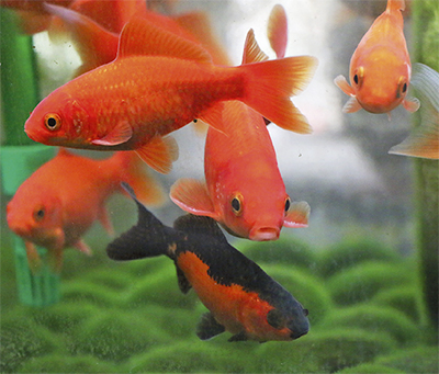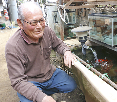 もとは10年以上前に南足柄市の釣り堀で金魚釣りをして獲ってきた5匹。当時は5cmほどだったが、今では鯉にも見違えるほどの大きさに育った。孫の成美さんが勤め先から譲り受けてきたものも加わり、どちらも毎年のように卵を産んできたという。「100匹はいると思うけど、もう何匹だかわかんない。納涼祭で喜んでもらえるのが嬉しい」と柳川さんは笑う。