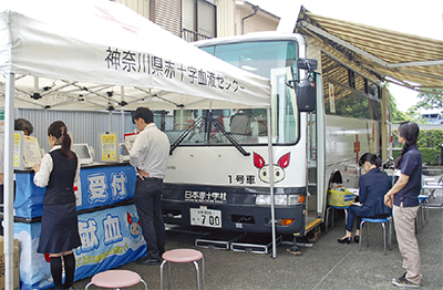 中栄信用金庫(石田進理事長)は6月15日の「信用金庫の日」にちなみ、社会貢献活動として、本店(15日)と鶴巻中央支店(16日)でそれぞれ献血活動をおこなった。
