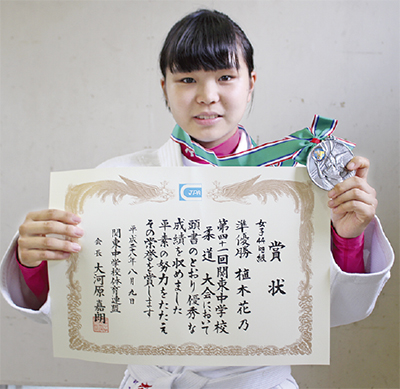 県大会で準優勝を収め、関東大会への出場を決めた植木花乃さん(西中3年・44kg級)。中学生最後を飾る関東大会に向けて、乱取り練習で体力をつけるなど大会に向けて励んだ。試合前まで対戦相手の対策を練り、体を動かす事で、課題だった集中力を高める事ができたという。