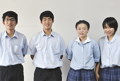 関東大会出場メンバーは、部長の宇田川剛史さん(2年)・三川真慧(まさと)さん(同)ペアと井口茜理さん(同)・青島光希さん(同)ペア。