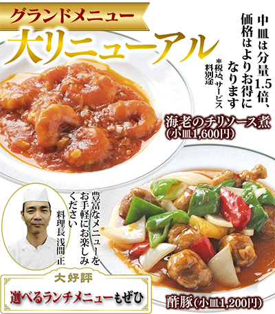 場所は秦野駅北口から徒歩1分、グランドホテル神奈中2階。料理長は「より皆様に喜んで頂けるよう、リニューアルを致しました。ぜひ心ゆくまでご堪能ください」と話している。