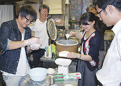 アイデアを形にするべく10月4日、メンバーの店で試作を行った。用意したコメは、鶴巻で収穫された「さとじまん」という品種。粒が大きくモチモチした食感で冷めても美味しいという。