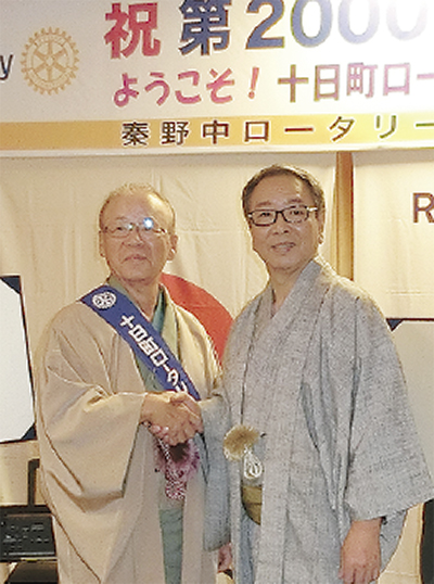 秦野中ロータリークラブ(RC・和田彰久会長)が10月21日、グランドホテル神奈中秦野で第2千回例会を開催した。同中RCメンバーのほか友好クラブ十日町RCの会長、国際ロータリー第2780地区の佐野英之ガバナーが出席し、会の節目を祝った。