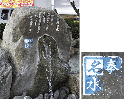それを受け市は、広く秦野の名水を知ってもらおうと、5月に駅北口広場の水場の石にロゴマークを描きつけた。同所は地下50mから汲み上げた地下水に触れられ、市外から訪れるハイカーなどにも親しまれているスポット。