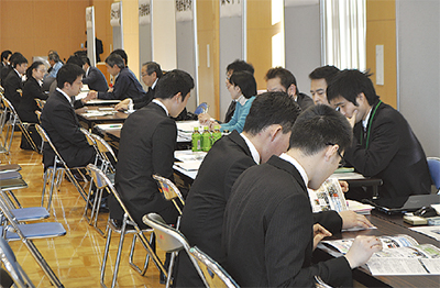 当日会場には同校に通う生徒を始め、一般の求職者らが多数訪れ、それぞれの希望する分野の企業の担当者に熱心に話を聞く姿が見られた。