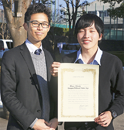 県立秦野曽屋高校の2年生、江原北斗さんが、第55回全国高等学校生徒英作文コンテスト「2年・3年生の部」で優秀賞に輝いた。同コンテストには全国から2万4881作品の応募があり、昨年11月に入賞者が発表された。同部門で優秀賞に選ばれたのは5人のみ。
