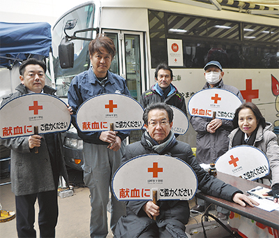 秦野丹沢ライオンズクラブ(安藤幸一会長)が1月14日、イオン秦野ショッピングセンターで献血活動を行った。これは同会が社会奉仕活動として実施しているもの。当日は時折、雪がちらつく冷え込みとなったが、メンバーらは店舗を訪れる人々に献血への協力を呼びかけた。72人が受付し、64人が献血に協力した。