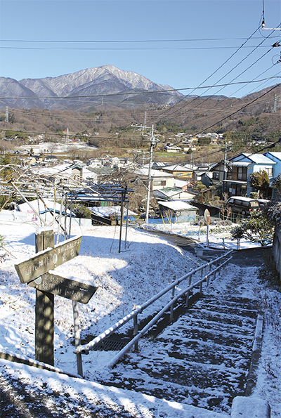 前日から降り始めた雪は夜間に降り積もり、山に近い地域ではうっすらと雪化粧。弘法山の麓では、散歩やハイキングの人に使われている階段が凍りついていた=写真。明け方には雲一つない快晴となり、雪は光を反射させながら徐々に溶けていった。
