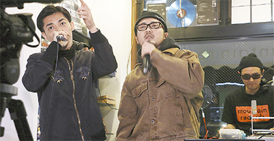 2月14日、午後7時半。秦野市の本町四ツ角近くにあるレコード店mountain records(通称ヤマレコ)に過去最多の70人近い人が集まっていた。この日は、秦野市出身のMC(ラッパー)takanomeさん(32)=東京都在住=の1stアルバム『STAND ALONE』のリリースを記念したイベント開催日。同店で定期的に収録されている音楽情報番組「Tuesday Chooseday」の公開収録も行われ、トークやライブの様子がWeb配信された。