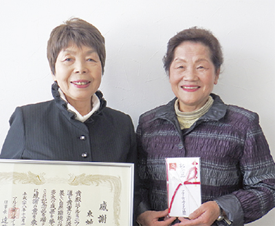 東婦人会は東地区が市から資源回収のモデル地区に指定されて以降、自治会と共にアルミ缶のほか瓶や新聞紙など7品目の資源回収を行ってきた。市内の他7地区は学校PTAが主に回収を行っているが、東地区ではPTAが忙しい3・4・8月に婦人会が主に回収を担っている。ストックハウスのある地域以外は、会員らが軽トラで巡回。収益は全額会員に還元しているという。渡邉会長は「これまで携わった多くの方の努力によって表彰されたのだと、嬉しく思っています」と話した。