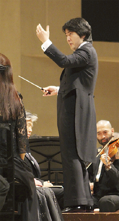 秦野市文化会館(飯沼充館長)で3月20日、市民公募によって結成された合唱団が歌声を披露する第29回丹沢音楽祭「ブラームス『ドイツ・レクイエム』」が開催された。第2部では秦野市出身で世界的に活躍する指揮者・山田和樹さんが指揮を務めた。