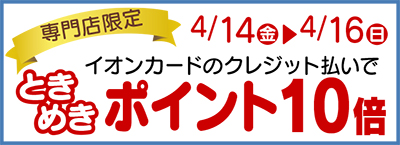 草木が芽吹き、日差しもだんだん暖かに。春の訪れをお祝いする心うきうきの祭典「イースター」。イオン秦野ショッピングセンター専門店街では、イースター特別お買得セールを4月14日(金)〜16日(日)の3日間限定で開催。この期間中に専門店街でイオンカードのクレジットでお買い物すると、「ときめきポイント10倍」になるのでお見逃しなく(※一部対象外店あり)。