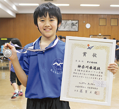 秦野市の卓球クラブ「嵐」に所属する山本煌翔(きらと)選手(南中学校1年/大会時は南小6年)が、3月24日から26日に鳥取県で開催された第14回全国ホープス選抜卓球大会に神奈川県選抜メンバーとして出場し、団体戦で準優勝に輝いた。