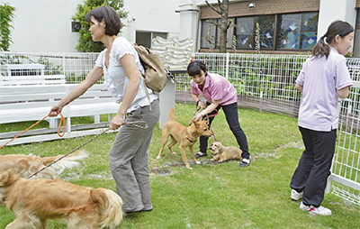 〈お散歩サービス〉/ご入居者が愛犬のお散歩ができなくなっても、スタッフが責任を持って行います。