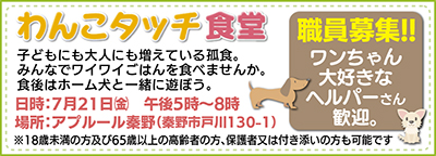 なお、同施設の地域貢献への取り組みとして、ホーム犬とふれあえる子ども食堂〜「わんこタッチ食堂」が、月1回(毎月第3金曜日)施設内で開催される。