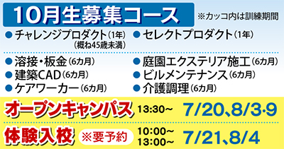 修了生の就職率96%を誇る、県立西部総合職業技術校(秦野市桜町2の1の3)では、現在、10月入校生を募集している。