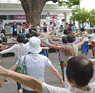 イオン秦野ショッピングセンターで7月28日から8月6日まで、毎朝地元住民らが参加してラジオ体操が実施されている=写真=。
