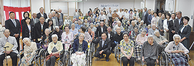 また、入所者を代表し、奥津千代子さん(89)があいさつ。「心温まるお祝いの言葉をありがとうございます。私も同世代の仲間と歌ったり、会話を楽しみ、こうして挨拶ができるほど元気になりました。これからも皆さまと過ごす時間を大切にしたい」とはつらつとした声で話した。最後に、黒岩知事は会場に集まった入所者一人ひとりと握手をしてまわり、入所者やその家族は写真を撮ったり会話を交わしたりしていた。