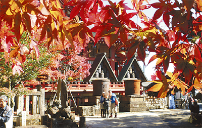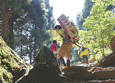 家族連れなどに混ざってケーブルカーに乗り、大山阿夫利神社へ。登山前に紅葉を撮影する人たち、七五三のため参拝する家族連れを横目に登山口へ向かい登山スタート。登山道では頂上の山小屋へ届けるビール(24缶×6箱)を担いで上がる猛者にも出会った。