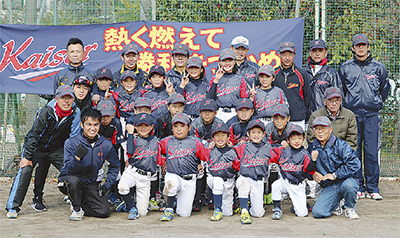 トーナメント戦を勝ち上がり、迎えた決勝戦は強豪・コメッツとの対戦。初回、先頭打者のホームランでコメッツが先制点を上げるが、エースの小澤凜音さん(東小6)が後続を抑え、6回で同点に。7回最終回まで1対1と接戦を繰り広げ延長戦に突入。先攻コメッツに2点を先取されるが、裏の攻撃で先頭打者の竹下優希君(東小6)がホームランを放ち、逆転優勝を成し遂げた。石川梨杏主将(東小6)は「皆の力で優勝できて嬉しい」と喜びを語った。新入団員の募集は小清水監督【電話】090・4739・1613へ。【URL】http://kaiser.89dream.jp/