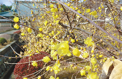 極楽寺(秦野市鶴巻1861・守本善英住職)の境内でロウバイが咲き始めた。甘い香りに誘われるように訪れた人々の目を楽しませている。