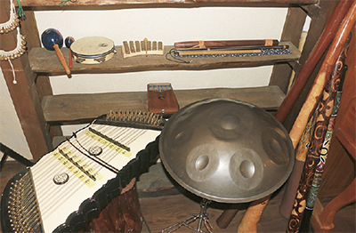 店内には打楽器の「ハンドパン」など、きっかわさんが集めた世界各地の楽器が置いてあり自由に触って演奏することができる。2月19日に来店した小学生の男の子はアボリジニの楽器ディジュリドゥの低音に大興奮。「座敷があり、楽器に触れるので子どもも楽しめる」と子連れで訪れる女性も多い。