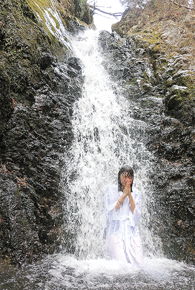 清久(きよく)瑛莉香さん(23)=川崎市=は先日アマゾンで購入した白装束に身を包み人生初めての挑戦。1分ほど冷たい水を浴びながら手を合わせ、タオルで体を拭くと、「心が洗われました。また来たいです」と笑顔で話した。