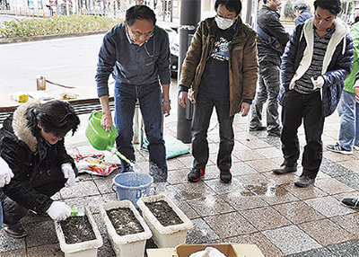 「ZARD」のボーカルで秦野市出身の故・坂井泉水さんのファン約20人は3月10日、小田急線渋沢駅南口にあるプランターの球根の植え替えを行った。球根は坂井さんが生前好んでいた白色のカラーの花。