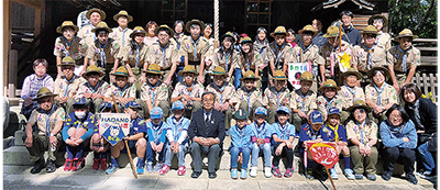 ボーイスカウト秦野第1団(佐野友保団委員長・71人)の上進式が4月8日、曾屋神社で行われた。上進式では、ビーバー隊(小1〜2)、カブ隊(小3〜5)、ボーイ隊(小6〜中3)、ベンチャー隊(高1〜3)の各隊から11人のスカウトが許可を受け、上の隊へ進んだ。このほか、ローバー隊(18歳〜25歳)から新たに柿本赳志さんと須藤舞さんが指導者として任命された。