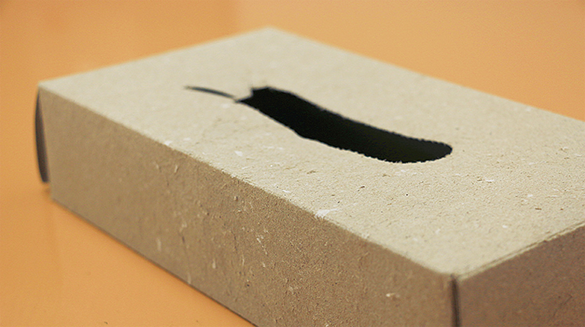デイサービス事業所の責任者、早川聖(たかし)さん(39)=人物風土記で紹介=らは、アートディレクターの中津川浩章さんのアドバイスを受けながら、1年前から利用者の創作活動を始めた。当初は共通モチーフを設定して取り組んだが、「一人ひとりが自然に没頭できることをしてもらおう」と方針転換。一人の利用者がいつもスーパーマーケットのロゴを描いているのを見て、支援員が「いつも紙の大きさに合わせて画面いっぱいに描いているのでは」と気づき、様々なサイズの紙を渡してみると、数cm四方から大きなものまで描かれたロゴの連作が完成した。また、紙を剥がすのが好きな人が丁寧に剥き上げたティッシュペーパーの箱は、存在感あふれるアート作品となった。