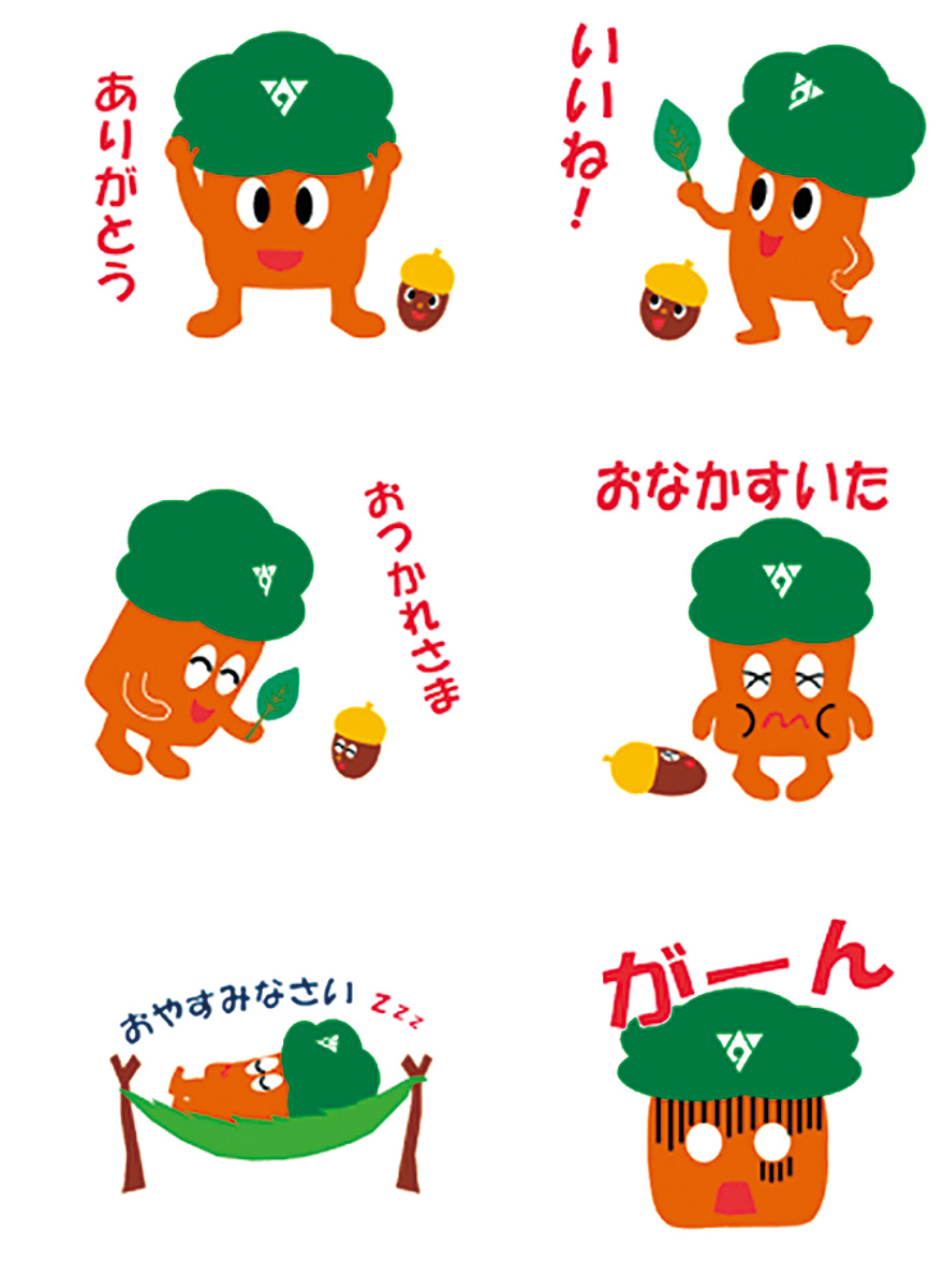 今回作成されたLINEスタンプは日常の場面で使いやすいよう、「ありがとう」「ごめんなさい」など豊富なバリエーション。LINEアプリ内のスタンプショップで「もりりんと一緒」と検索し、「クリエイターズ」のカテゴリーからダウンロードできる。購入価格は50コイン(120円)。問い合わせは同課【電話】0463・82・9618へ。