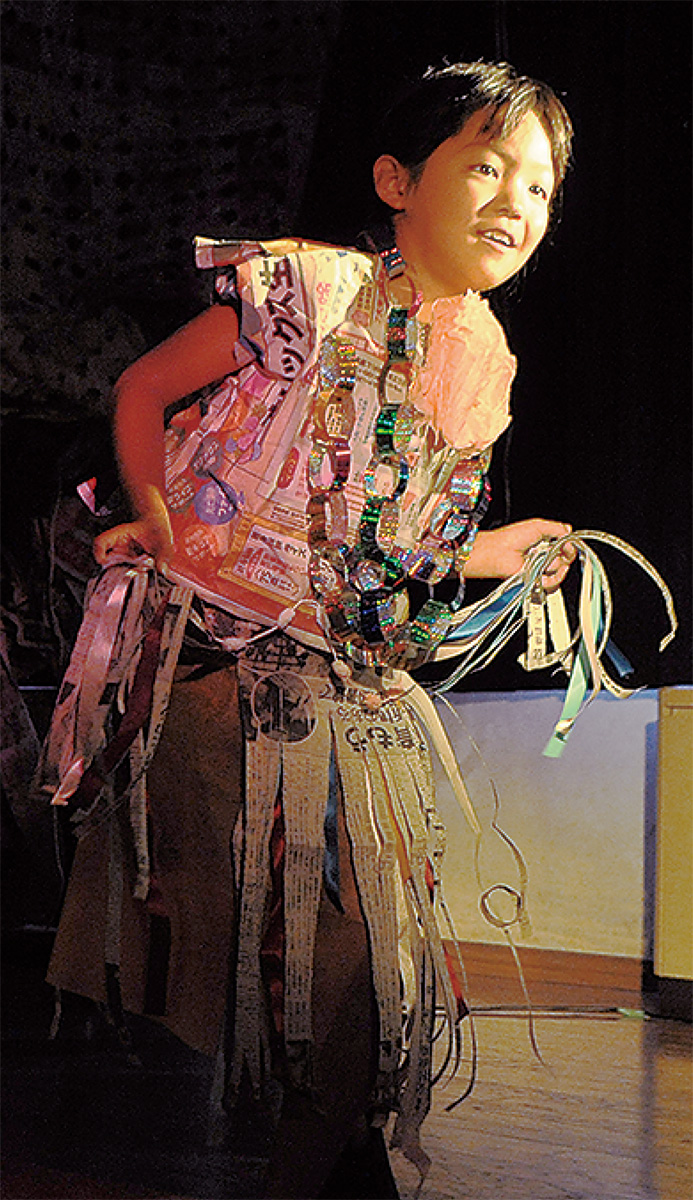 新聞紙を細かく切り、ひらひらのスカートを披露した小学3年生の女の子は、「去年からお兄ちゃんと参加している。ドレスをイメージして作って楽しかった。また来年も参加したい」と話した。