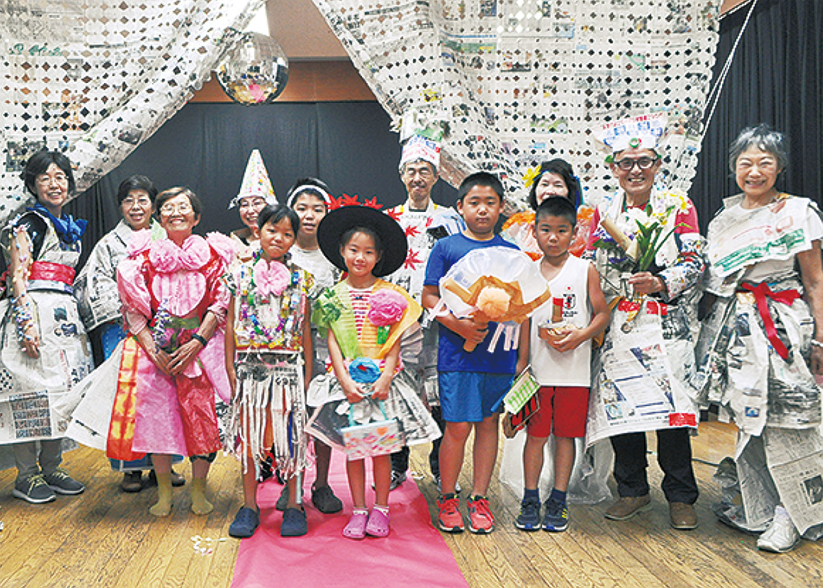 秦野市曽屋のほうらい会館で7月24日、新聞紙など家庭でいらなくなったものを用いて衣装を作るファッションショーが開かれた。4回目となる今回は、13人が手作り衣装を披露した。