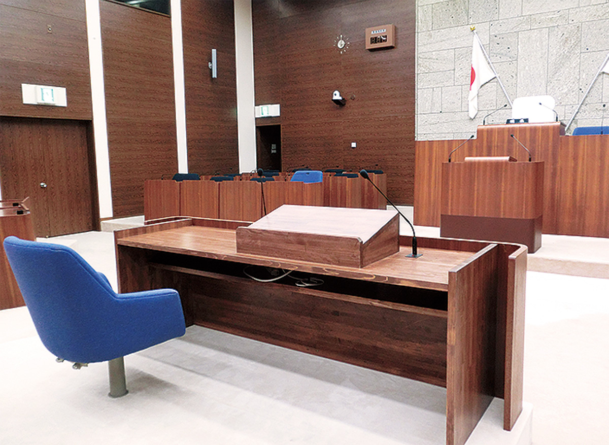 この質問者席は一般質問などで議員が二次質問をする際に使用されるもの。これまではそれぞれの自席で発言を行っていたが、より傍聴者にわかりやすく、活発な議論を行うことを目的に、質問者の議員と執行部が対面する形式となっている。