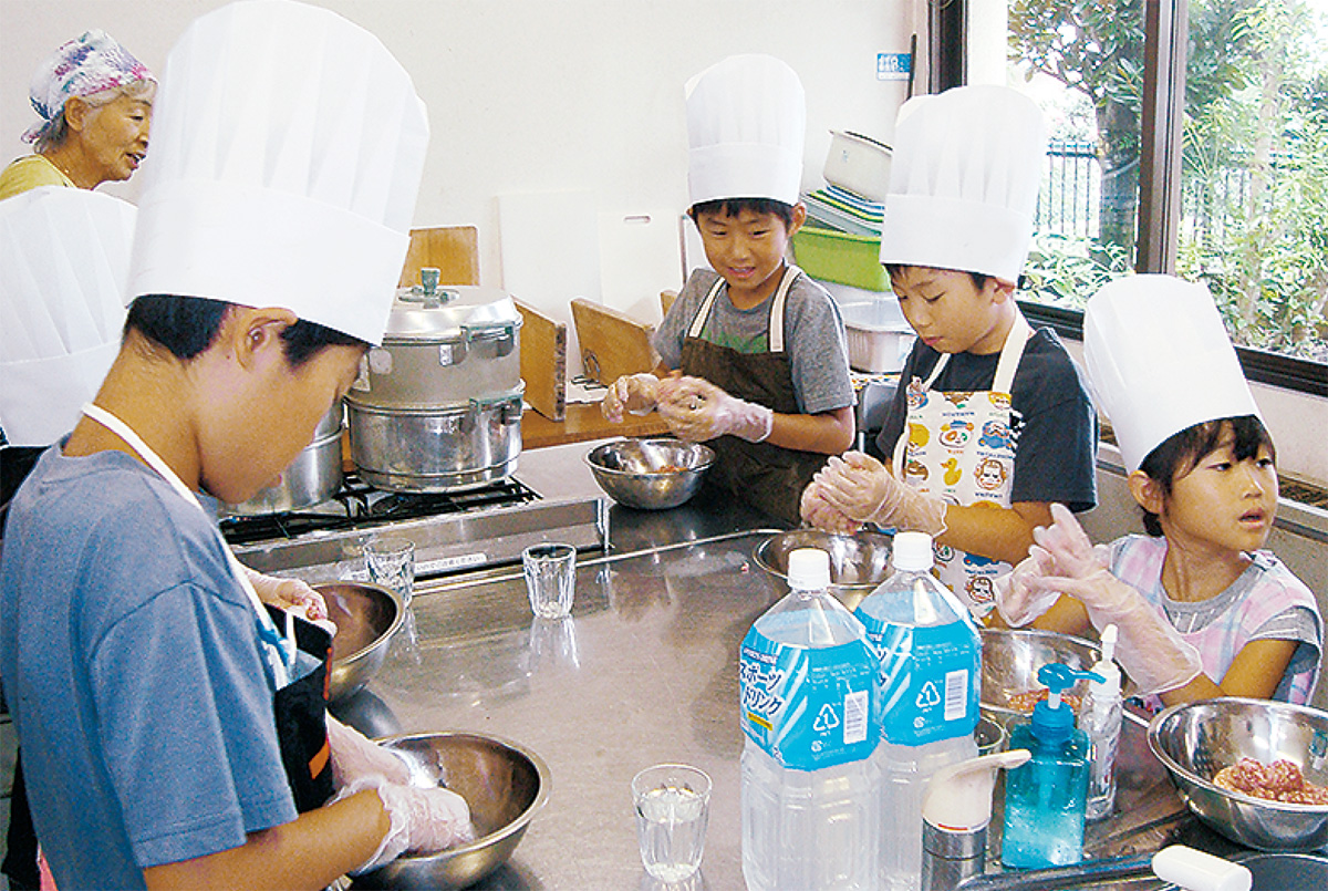 挑戦したのは「蒸しロールキャベツ」。ミートアレルギーのある子どもには、大豆ミートとおからを使用したもの、または白身魚を使用したものが用意された。「いただきます」などの食事のあいさつの大切さや食べた物が体内でどう変化するかなどの説明がされ、子どもも大人も興味津々。調理の際には、子どもたち一人ひとりにコック帽が渡され、皆が主役となって取り組んだ。参加した子どもは「自分たちで作ったり、片づけたりして、初めてで楽しかった」と話した。講師の山下さんは「楽しんでくれてよかった。アレルギーのある子でも参加しやすい講座を今後も開きたい」と話した。