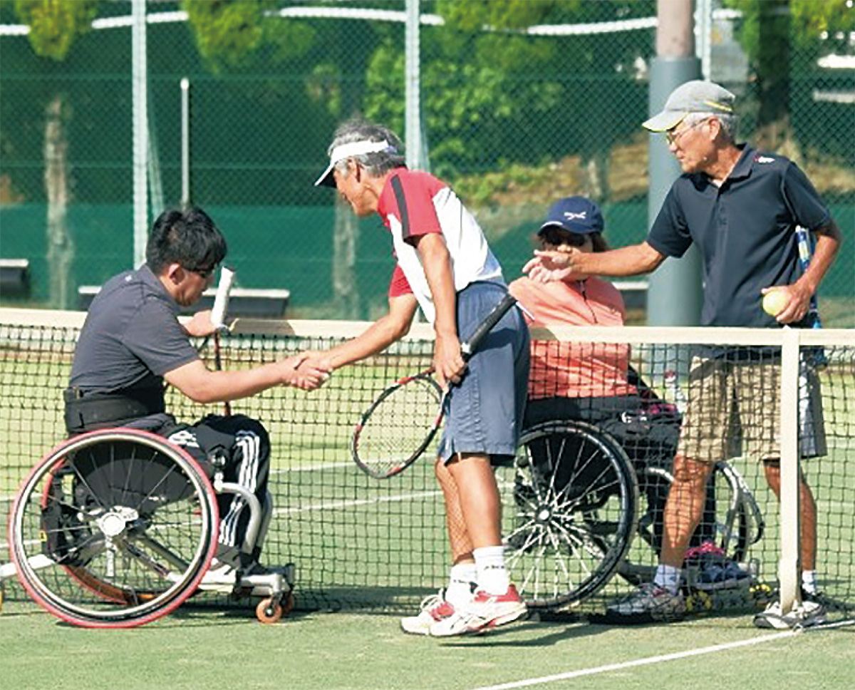 試合は、車いす者はツーバウンドまで、健常者は通常と同じくワンバウンドまでとなっており、コート中央のサービスラインより前でのボレーとスマッシュは禁止というルールで行われた。初めて車いす者とペアを組む健常者も多く、車いす者につられてツーバウンドで返球してしまう選手も。慣れないルールに戸惑う姿も見られたが、笑い声もあがり、参加者らは楽しみながら試合に取り組んでいた。初めて参加した広石恭子さんは「車いすを巧みに動かしながら、健常者顔負けのテニスをされる皆さんの活躍ぶりにただ驚きでした」と話した。