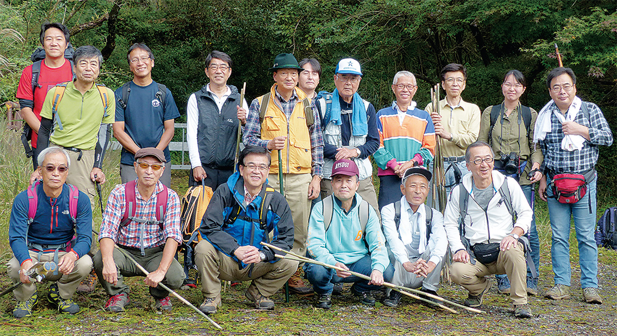 忘れられていた鐘を目指した追悼登山には、同会をはじめ、厚木や愛川などの支部、山岳部OB会のメンバーら17人が参加。70代の人やOBである高橋昌和市長も登山口に駆け付けた。
