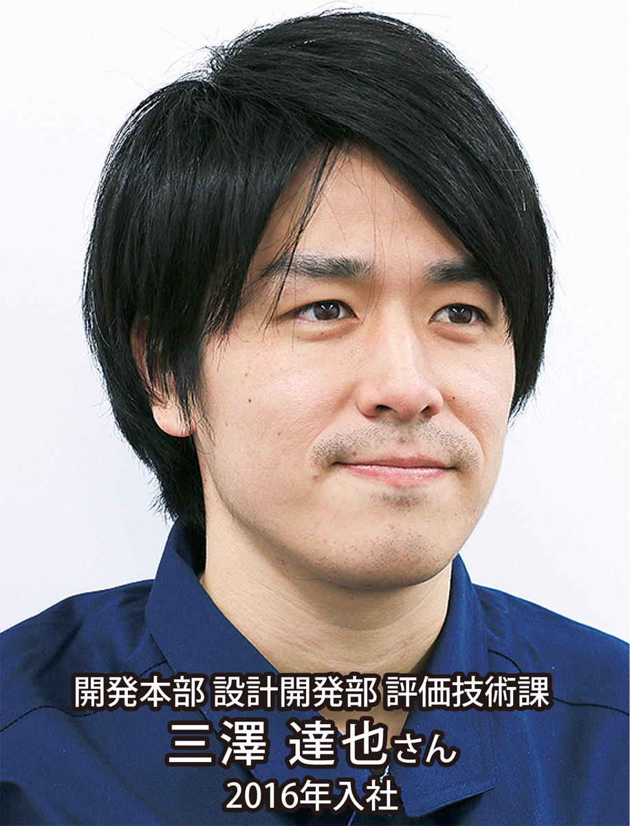 配属後は他の部署やお客様から依頼を受け、製品の耐久性などを評価する仕事をしています。同僚と協力して課題を解決できた時は達成感があります。