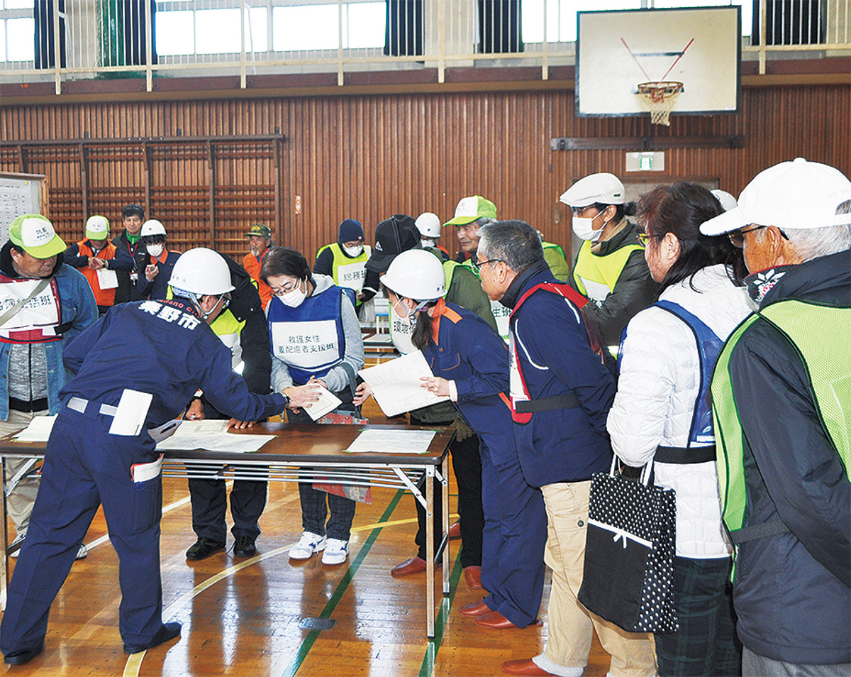 当日は市内各小・中学校に、自治会を中心に組織する避難所運営委員会の委員、施設管理者、学校教職員、市職員地区配備隊、市防災課職員らが集合。各会場では避難所開設、受付等の避難所運営、炊き出し・給水訓練等が行われた。