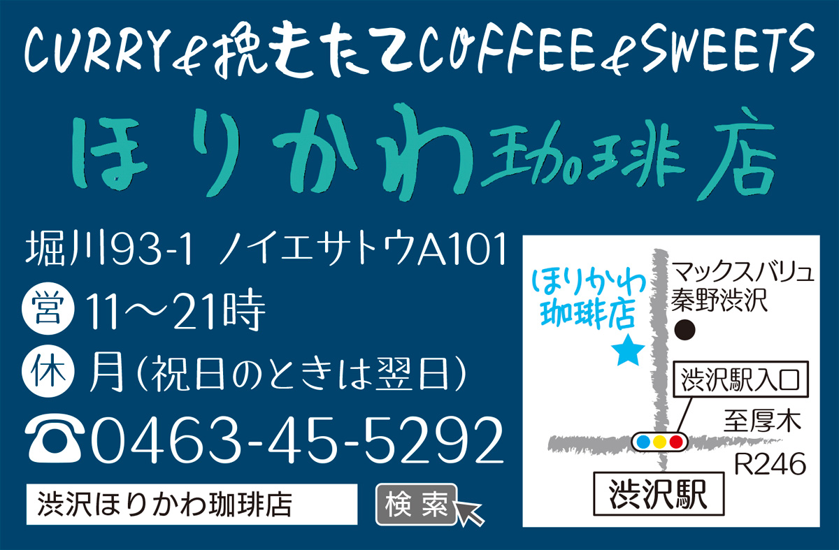 マックスバリュ秦野渋沢店近くに昨年11月にオープンした「ほりかわ珈琲店」は、東京赤坂で10年近くインド料理店に従事していた、オーナーとシェフが営む店。
