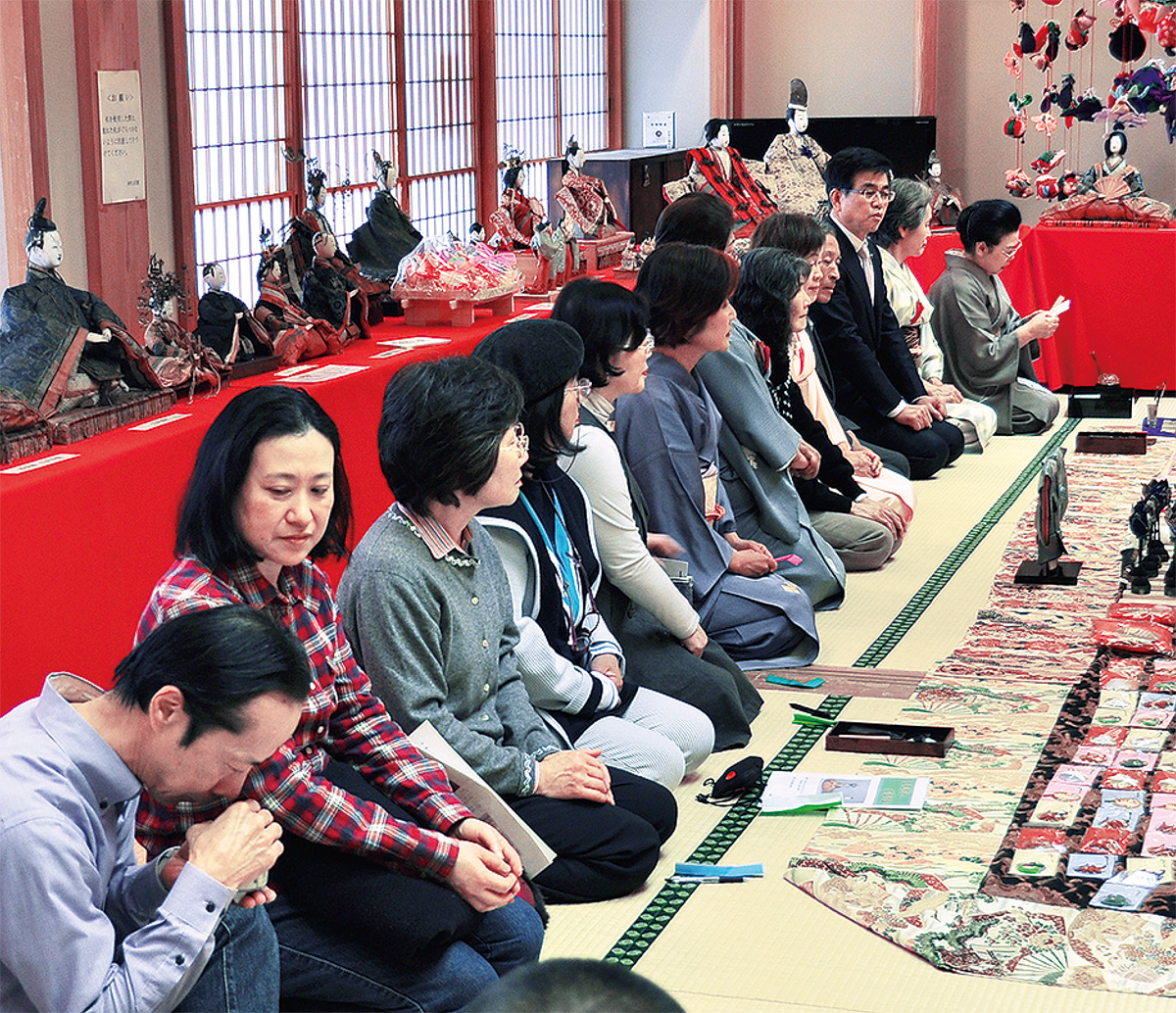 席主の神山鶴舞峰(かくぶほう)さんが御家流香道のやり方について説明し、参加者らは順々にお香を聞いていった。この日使われた香木は真那伽(まなか)、白檀(びゃくだん)、伽羅(きゃら)の3種類。参加者らは「香りの違いが分かった」「おひな様に囲まれて、非日常で貴重な体験」「静かな世界も良いわね」などと口々に言い、会を楽しんでいた。