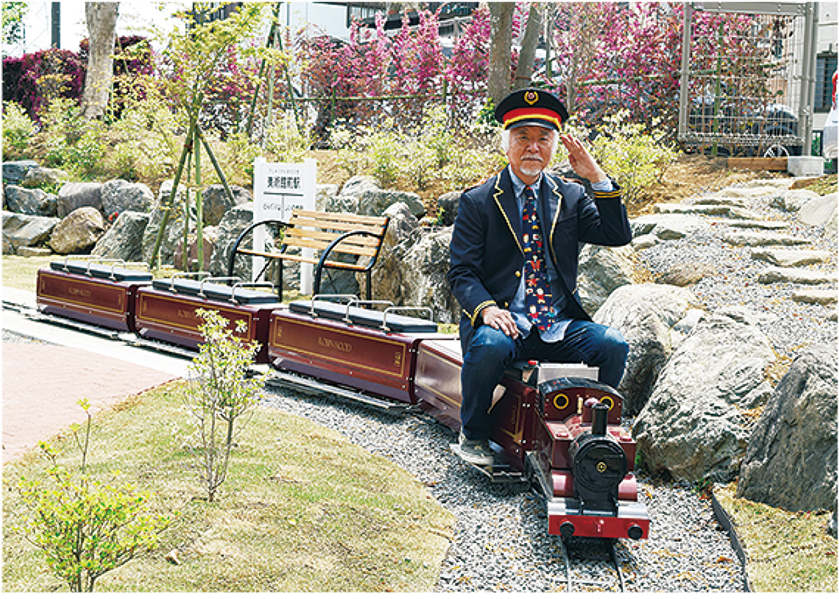 美術館内には作品展示のほか、豊かな自然にマッチしたカフェ「森のカフェ」も併設。オーガニックのコーヒーや料理が楽しめる。また、800坪の敷地の一部には電車も敷設。緑の中を走る「森のポッポ鉄道」を楽しむことができる。