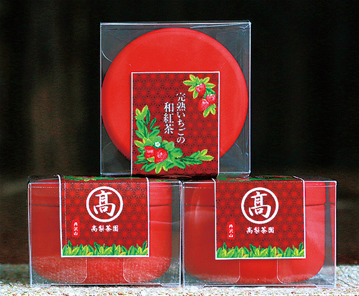 「和紅茶」とは日本生まれの紅茶で、茶葉を蒸す緑茶とは異なり完全発酵させて作られる。「完熟いちごの和紅茶」には、香り・味・冴えた紅色が特徴の「べにふうき」と、ジャスミンのような香りと程よい渋みが特徴的な「香駿」の2つの品種をブレンド。村上いちご園(秦野市戸川)のイチゴ「おいしいベリー」と「よつぼし」の2種を丹沢レインボーファーム(秦野市今泉)でドライ加工している。