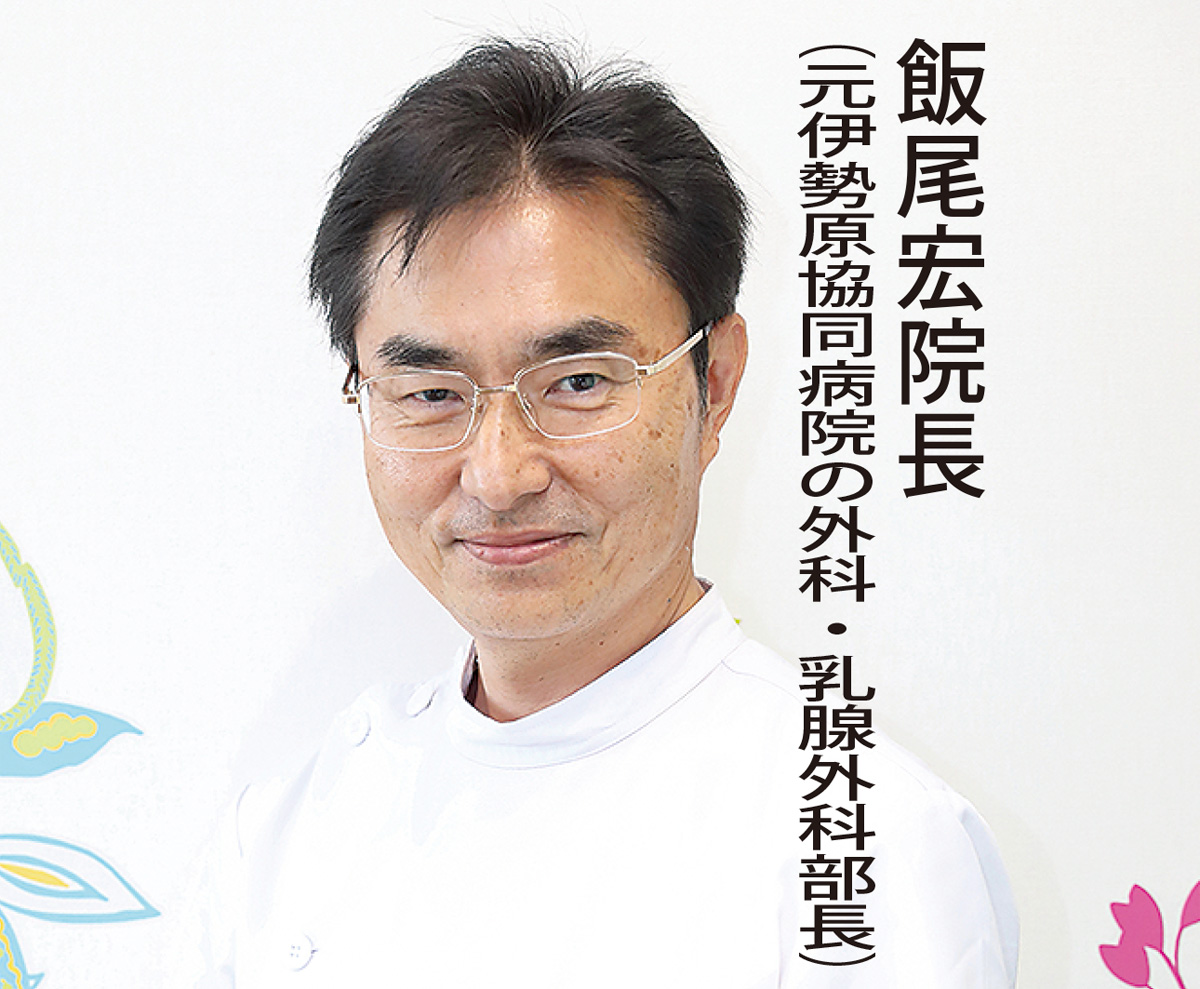 「乳がん検診が自己検診を始めるきっかけになればいいですね」と飯尾宏院長。しこりが2cm未満で転移のない早期乳がんは、手術時に乳房を残せる可能性が高く、治癒率も高いとされている。日本人女性の11人に1人が乳がんを患うようになり、自己検診や定期健診を受ける意識が必要だ。