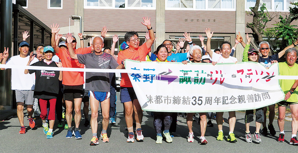 秦野市・諏訪市姉妹都市締結35周年記念「親善訪問リレーマラソン」が6月8日に行われた。