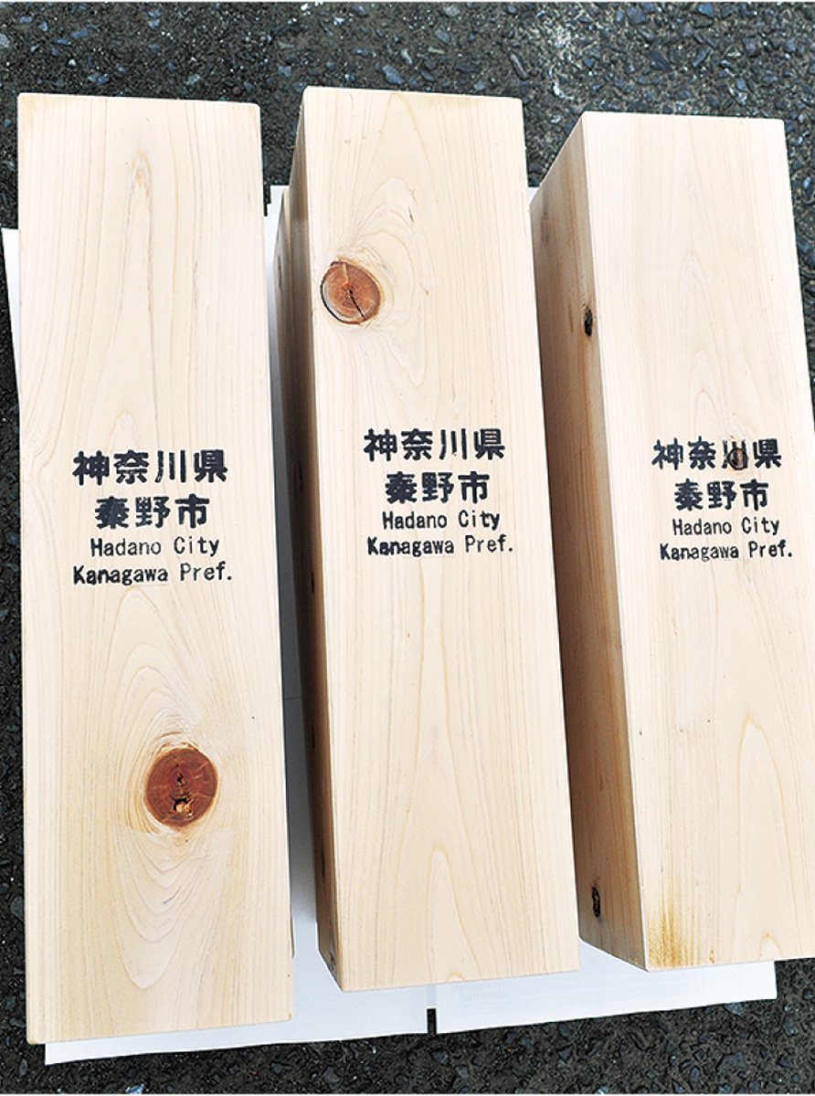 選手村ビレッジプラザへの木材提供は、大会で使われた木材をレガシーとして活用するプロジェクトとして公募されたもので、63自治体が参加している。秦野市ではヒノキ材約6㎥を提供することが決まっており、9月10日から搬出が始まった。提供材には「秦野市」の名前が明記され、大会終了後には返還されることになっている。